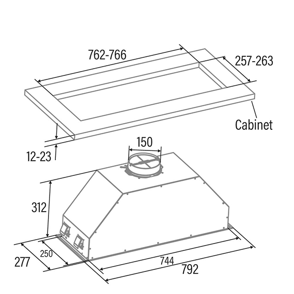 Dimensões (axlxp): 312x792x277mmencastre > exaustão encastre171.85NovoProduto Limitado €171,85