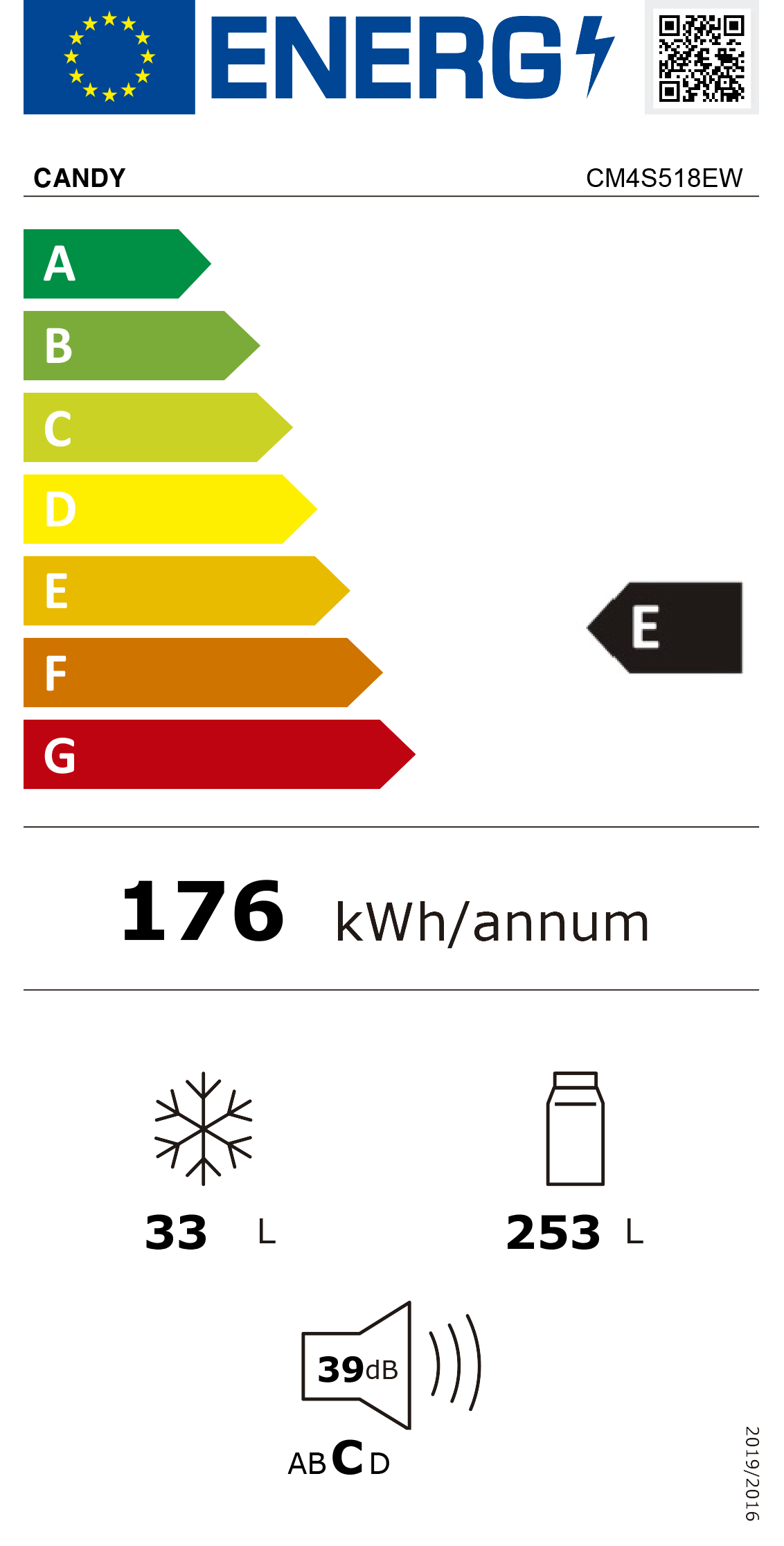 Consumo de energia anual: 176 kWh |