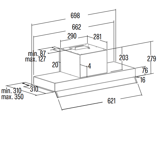 Dimensões (axlxp): 280x698x310-350mmencastre > exaustão encastre213.86NovoProduto Limitado €213,86