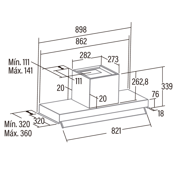 Dimensões (axlxp) 339x898x320-360mmencastre > exaustão encastre248.86NovoProduto Limitado €248,86