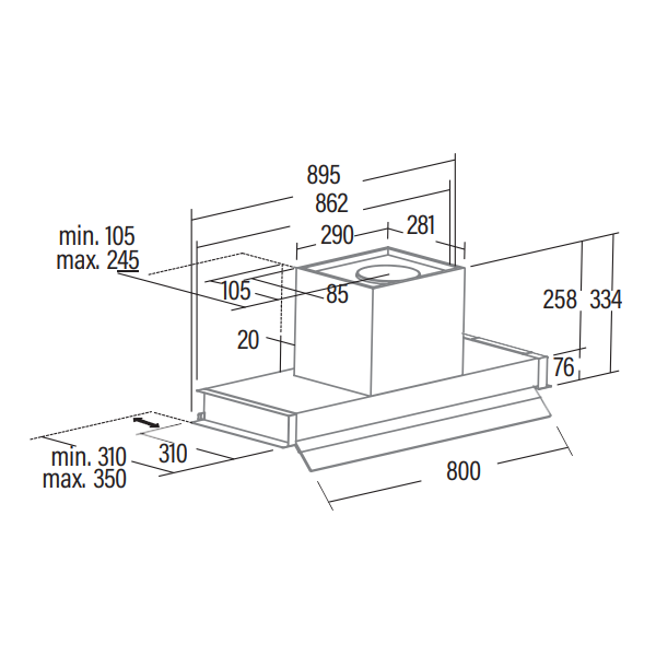 Capacidade de extração máxima - mínima (Reg.(UE) nº65/2014): 850m3/h - 340m3/h |