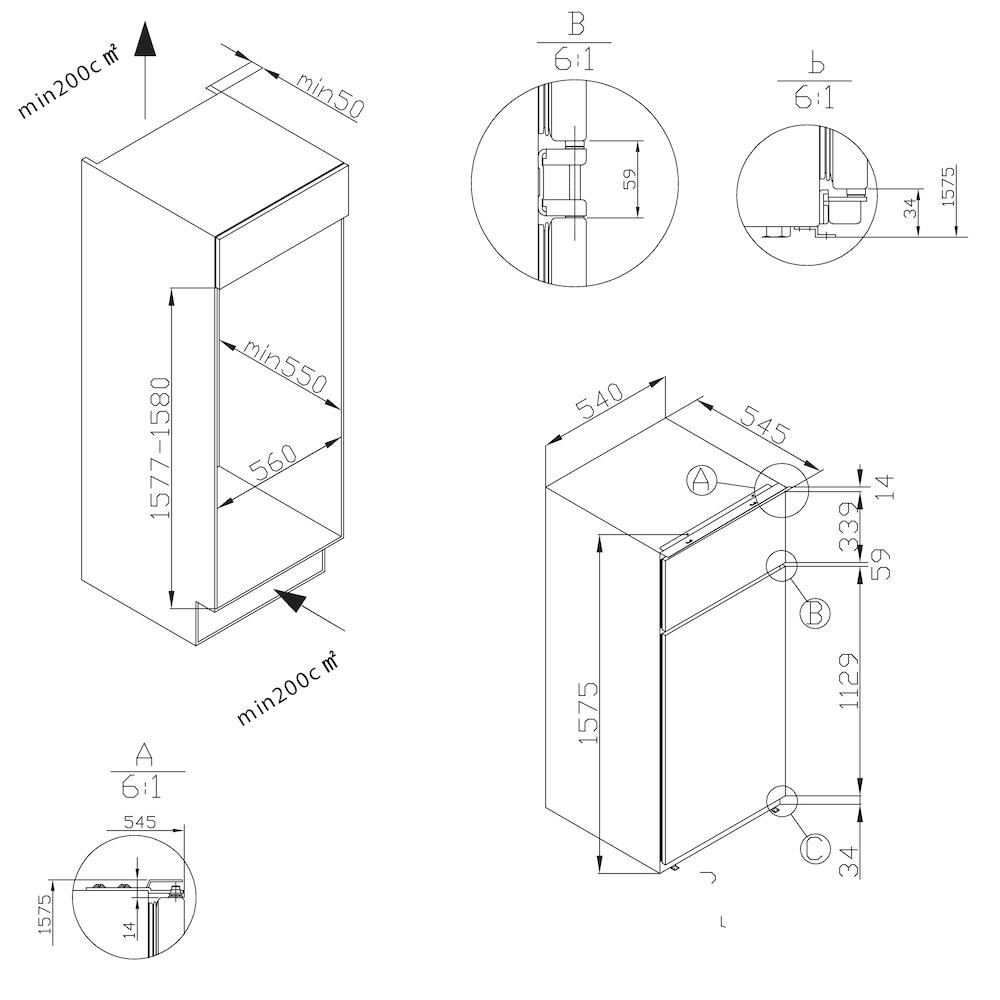 Dimensões necessárias para o encastre AxLxP: 157,7-158x56x55 cmencastre > frio encastre411.06NovoProduto disponível