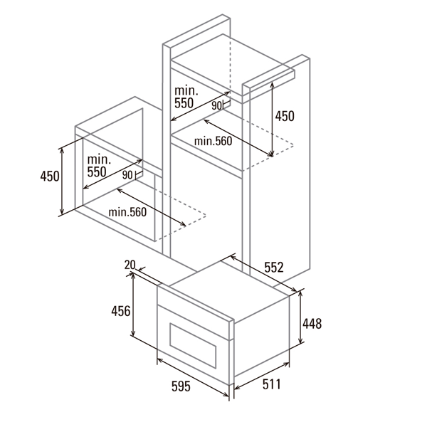 Encastrado em móvel de 45 cm |