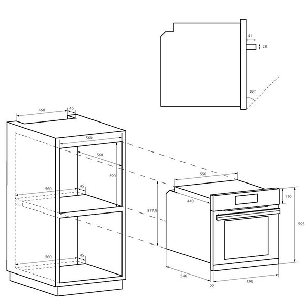 Dimensões necessárias para o encastre AxLxP:59x56x56 cm