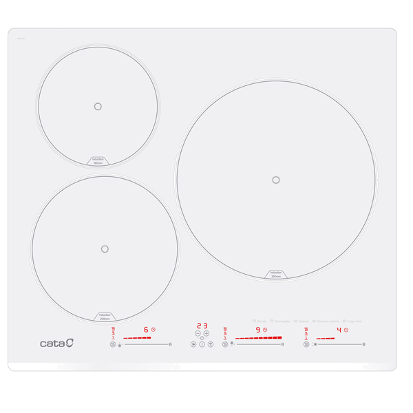 3 zonas de cozedura:1 zona de Ø300mm,1 zona de Ø230mm,1 zona de Ø180mm