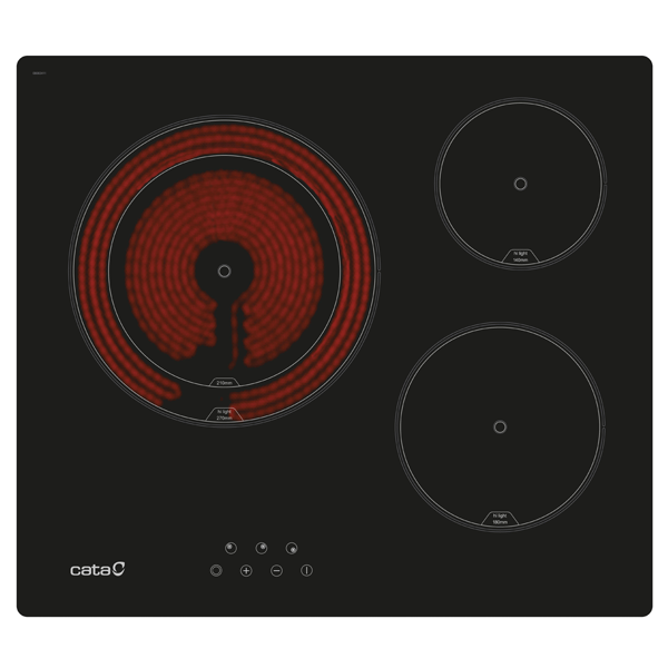 3 zonas de cozedura:1 zona de Ø270/210mm,1 zona de Ø180mm ,1 zona de Ø140mm