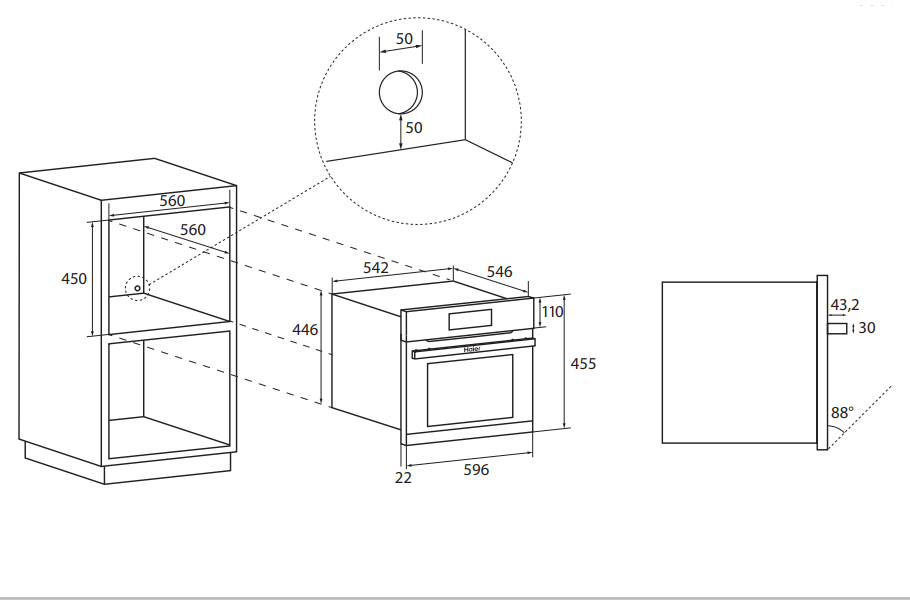 Dimensões necessárias para o encastre LxP: 450x560x560 cmencastre > fornos2448.68NovoProduto Limitado €2.448,68