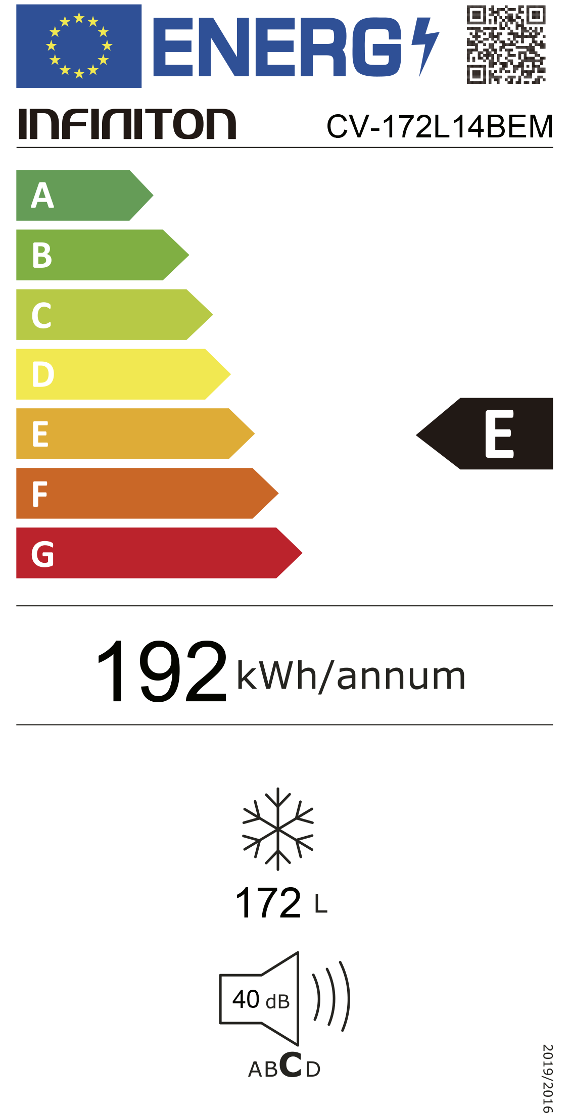 Consumo energético anual: 192 kWh/ano |