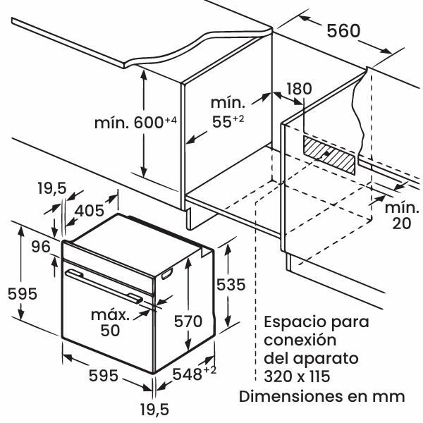 Dimensões de encastre:57x56x54,8cm