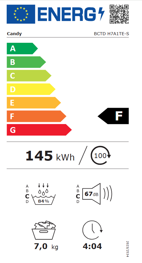 Consumo de energia do secador elétrico, carga completa - NOVO (2010/30/EU): 2,25 |