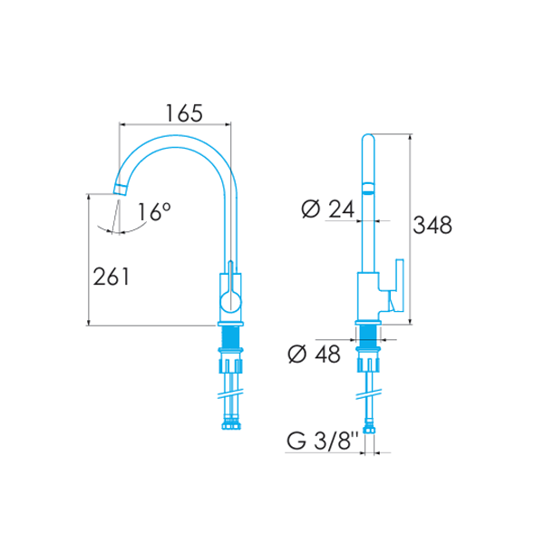 Tubos de conexão flexíveis M10x1x3/8” incluídos |