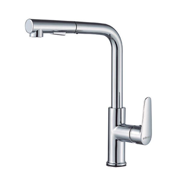 Comando estilo puxador,posicionado no lateral direito da torneira