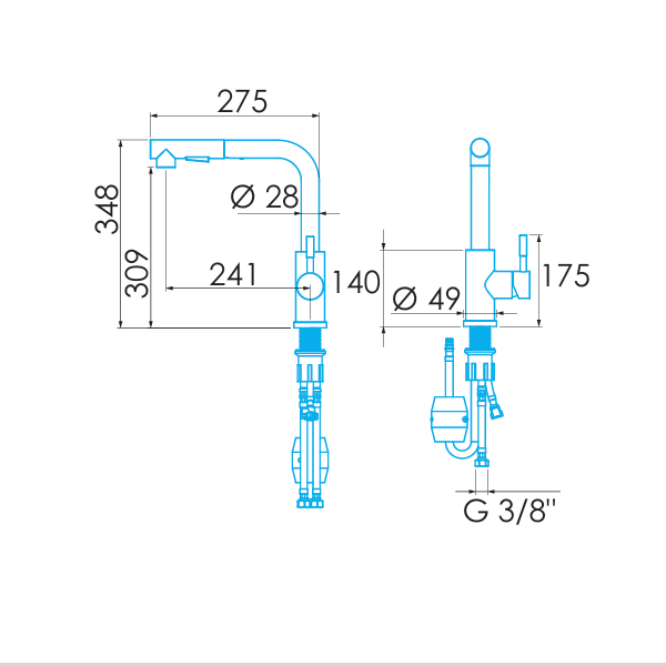 Tubos de conexão flexíveis M10x1x3/8”incluídos...